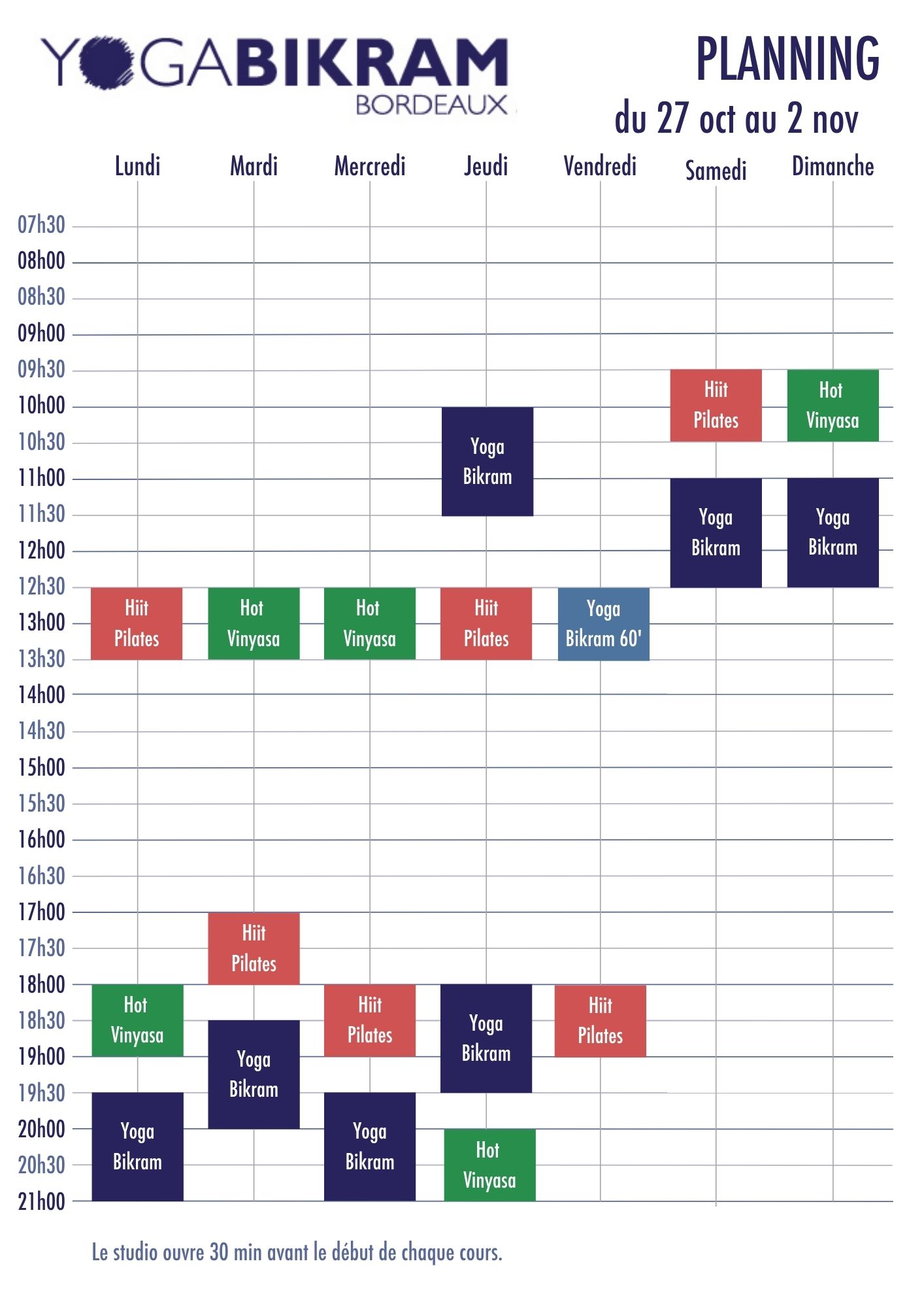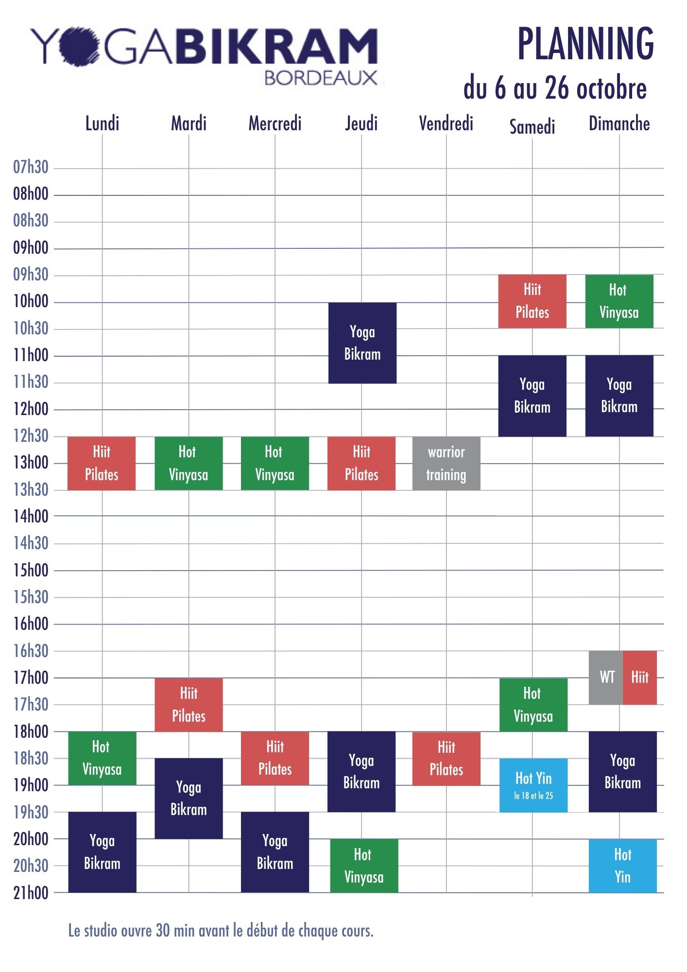 Voici le planning du mois d’octobre. Et, comme d’habitude, pensez à réserver vos cours sur le site ou l’application!
